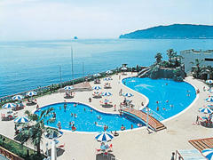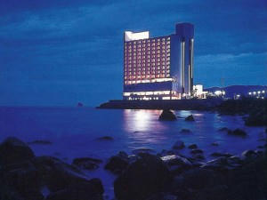 海岸線に建ち、客室から海を眺望。大好評の魚が泳ぐお魚風呂・露天風呂などで温泉三昧。