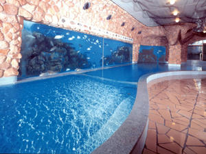 伊東温泉 サンハトヤの海底温泉「お魚風呂」。
