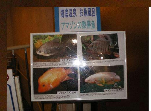 お魚風呂の水槽は、淡水魚と海水魚にわけ、日にちにより入れ替えているとのこと。